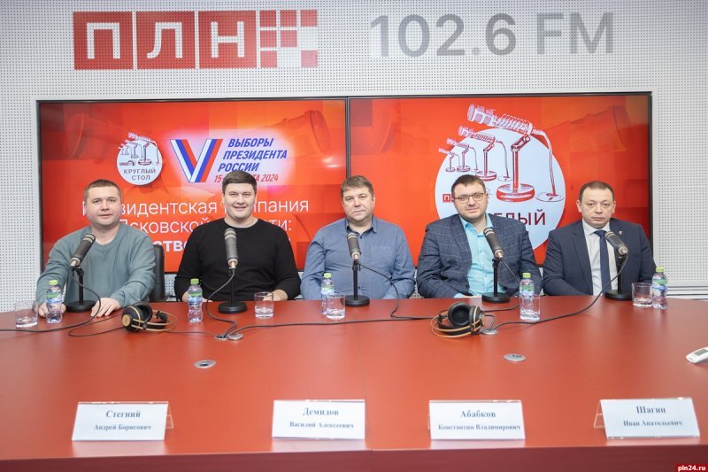 Евгений Панферов, главный врач Псковской областной клинической больницы; Иван Шагин, директор средней общеобразовательной школы №47 города Пскова, член Общественной палаты Псковской области; Константин Абабков, главный дирижер-руководитель Заслуженного коллектива народного творчества России - ансамбля «Сказ» имени В. Румянцева, член Общественной палаты Псковской области; Андрей Стегний, заместитель председателя Псковского облсовпрофа, эксперт, член общественного штаба по наблюдению за выборами при Общественной палате Псковской области; Василий Демидов, председатель Псковской региональной общественной организации «Федерация компьютерного спорта».Участники передачи рассказали, насколько им и их коллегам интересна президентская кампания, планируют ли они участвовать в выборах, считают ли удобным трехдневный формат голосования с использованием технологии ДЭГ.