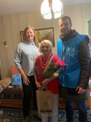 Отдел по молодёжной политике Управления образования Администрации г. Великие Луки с представителем социальной защиты, совместно с Волонтёрами Победы Великие Луки поздравили ветеранов с юбилеем, вручили им цветы и подарки.
