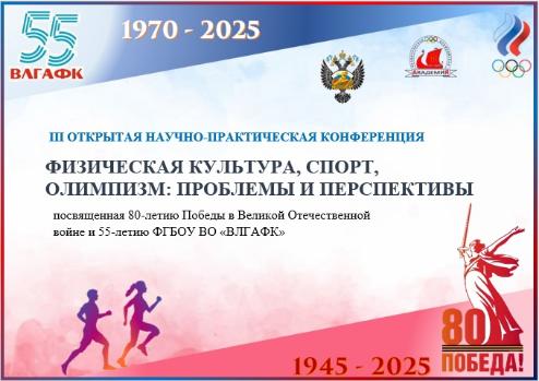 Приглашаем Вас принять участие в III открытой научно-практической конференции «Физическая культура, спорт, олимпизм: проблемы и перспективы» , посвященной 80-летию Победы в Великой Отечественной войне и 55-летию ФГБОУ ВО «ВЛГАФК».