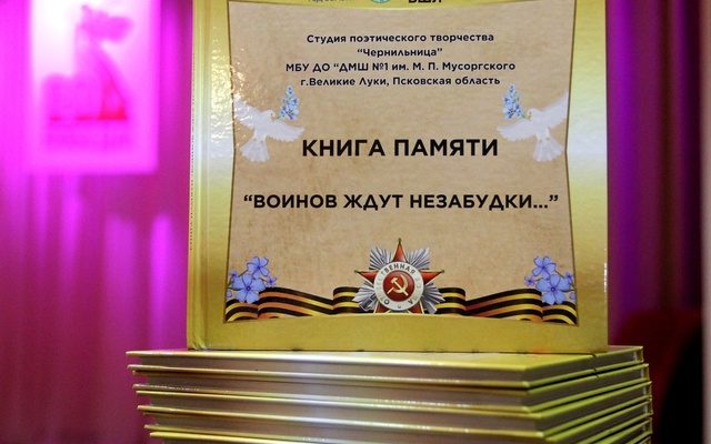 Истории из семейных архивов о своих предках-освободителях собирали воспитанники студии поэтического творчества «Чернильница», которой руководит член Союза детских и юношеских писателей России О.Н. Рахманова. Эти рассказы стали основой книги памяти «Воинов ждут незабудки…» (0+), которая вышла в июне 2024 года благодаря участию в проекте «Всероссийская школьная летопись» и стала победителем Всероссийского литературно-художественного конкурса «Время писать книги». Юных авторов и руководителя награждали на Красной площади. Сборник разошелся по разным городам нашей страны. Концерт-презентация авторской книги тоже состоялся в музыкальной школе им. М.П. Мусоргского в дни празднования 82-летия освобождения Великих Лук от немецко-фашистских захватчиков.