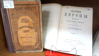 Здесь же можно увидеть легендарные журналы прошлого, например, тома главного патриотического органа печати «Русский вестник», выпущенные в начале XX века, экземпляры старейшего русского толстого журнала «Вестник Европы» и номера «Современника» времён Николая Некрасова.