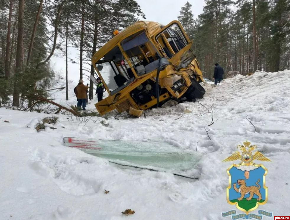 Напомним, 12 февраля автобус со школьниками съехал в кювет на дороге Санкт-Петербург - Псков - Пустошка - Невель - граница с Республикой Беларусь в Псковской области.