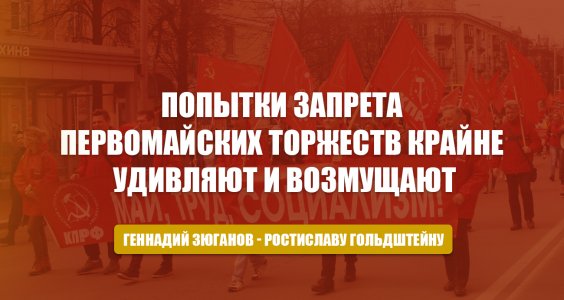 Геннадий Зюганов в телеграмме губернатору Ростиславу Гольдштейну: Попытки запрета первомайских торжеств крайне удивляют и возмущают. Предлагаю Вам не нарушать права граждан
