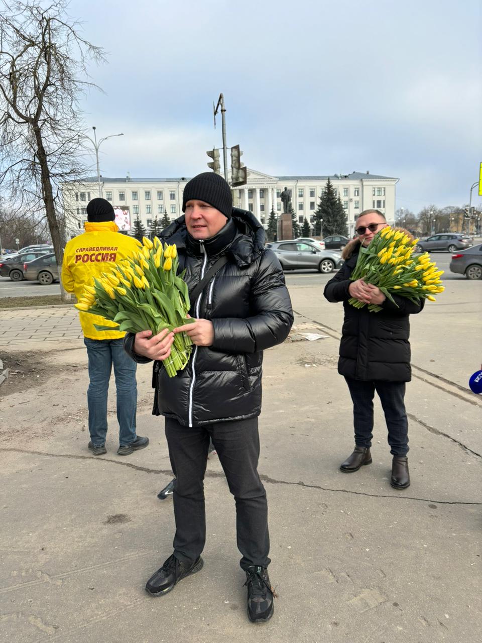 Олег Брячак дарил псковичкам желтые тюльпаны.