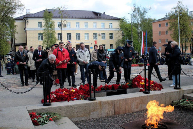 Депутаты-коммунисты возложили цветы к "Вечному огню" в честь Дня Победы.