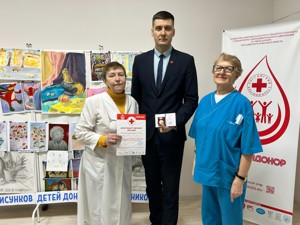 У Андрея Геннадьевича — универсальная группа крови. Свой почётный знак донор получил на станции переливания крови из рук врачей.